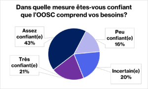 Si un peu plus des deux tiers des personnes ayant répondu à l’enquête se disent confiantes ou très confiantes quant à la capacité de l’OOSC de répondre à leurs besoins, d’autres ont indiqué qu’elles n’étaient pas encore convaincues. Vos réponses continueront de nous aider à mieux comprendre les domaines dans lesquels nous pouvons nous améliorer.